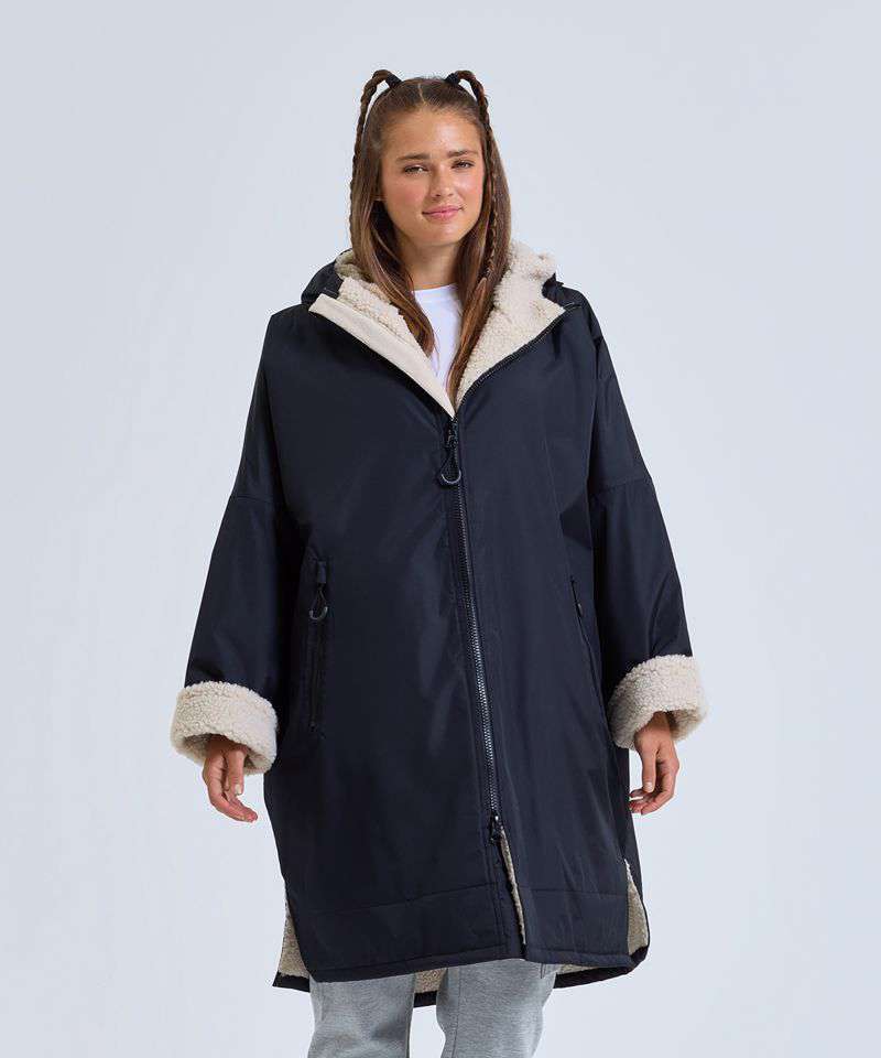 TriDri’s latest outerwear is essential in everyone’s wardrobe! The TriDri® All-seasons waterproof changing robe boasts a waterproof exterior with hood to keep you dry, as well as adjustable straps to the wrists and chin guard to help lock in heat on windy days. The cosy sherpa fleece interior absorbs moisture and keeps you warm, making it a great choice after water activities or rainy days on the football pitch. Designed to be oversized, the jacket is ideal for changing into warm, dry clothes, offering a double zip – so more room to move! Featuring multiple deep pockets, inside and out, it’s not just for athletes, but perfect for rainy commutes or frosty walks with the dog.